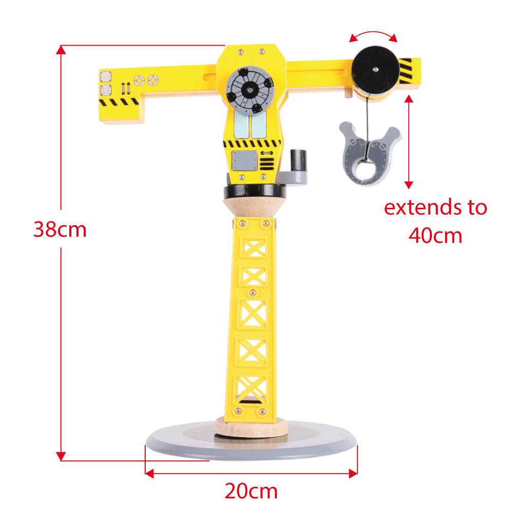 It's tiring work at the building site and time to get serious! Towering up into the skyline, this working wooden crane toy can lift a load, swivel it around and also move it forwards and backwards. An impressive wooden train accessory, it's just like the real thing!