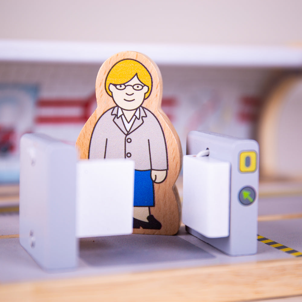 With this impressive wooden train accessory, commuters can buy their tickets, head through the ticket barrier and jump on the next train. This awesome train toy comes complete with a ticket machine, ticket barriers and 3 commuters.