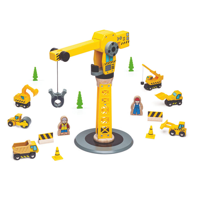 • Big Crane Construction Set by Bigjigs Rail: Children handle real working features, raising and lowering the crane’s load to build problem-solving skills through fun play.
