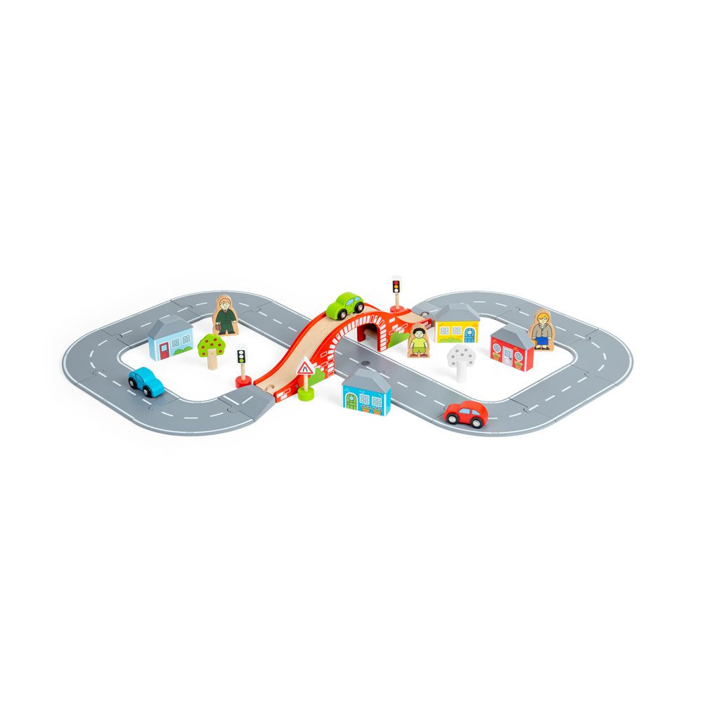 Figure of Eight Wooden Roadway Set – 36 Piece Toy Car Track with Bridge