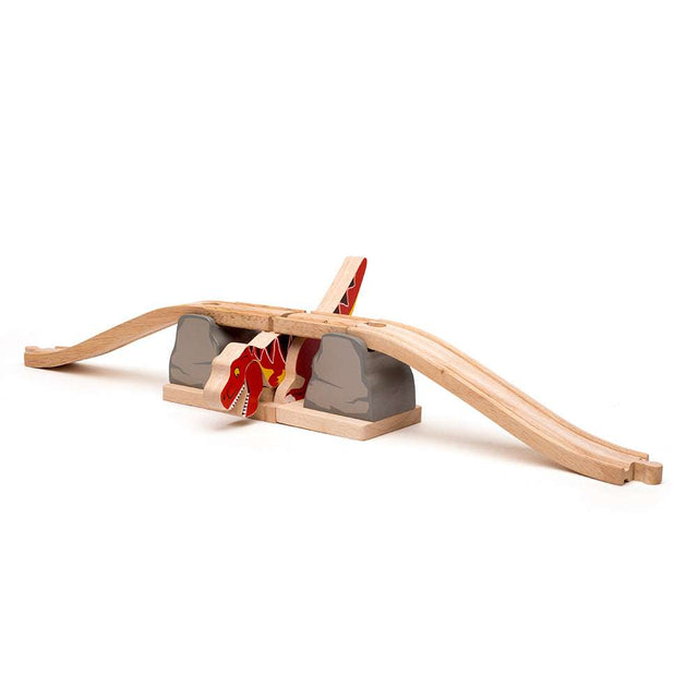 Mixing dinosaurs and toy trains makes for roarsome fun with the T-Rex Bursting Bridge! This awesome prehistoric wooden train accessory will have young rail enthusiasts entertained for hours on end. The perfect addition to our Dinosaur Wooden Train Set.