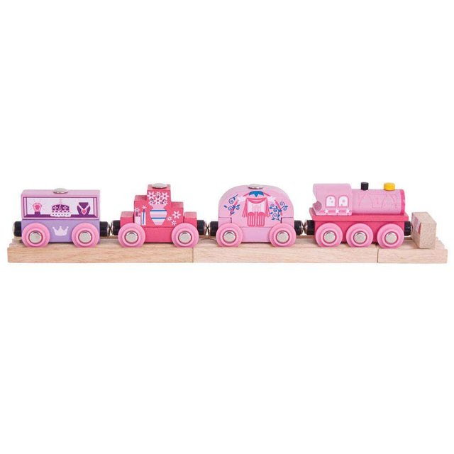 Kit out your pink train set with our royally fun Princess Train! Our Princess Train is inspired by the Fairy Figure of Eight Train Set and is beautifully detailed to melt the hearts of pink lovers. There's a carriage with the crown jewels, a carriage with beautiful blooms, and the royal carriage that keeps the Princess safe.